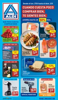 Aldi es una marca alemana de supermercados con muchos años de experiencia que ha llegado a ser conocida por su oferta de productos variados a precios asequibles y por sus ofertas semanales. Aldi ofrece productos de alimentación frescos, congelados y preparados, además de artículos de limpieza y cuidado personal con un sello de calidad. ¿Has comprado en los supermercados Aldi? Te contamos más sobre sus productos más populares y las ofertas que puedes encontrar en sus establecimientos. Para empezar a beneficiarte de sus ofertas actuales y estar al día de las últimas promociones y novedades, consulta el folleto online de Tiendeo.